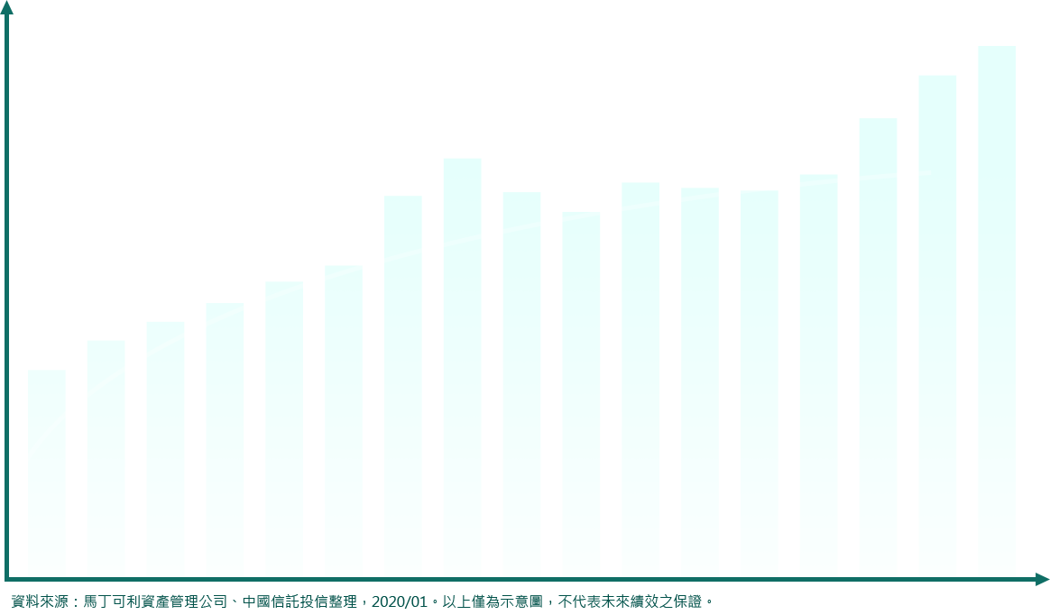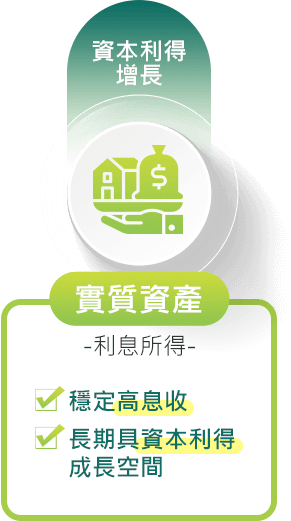 實質資產波動度及報酬率特性介於股票及債券之間,兼顧利息與潛在資本增長。
