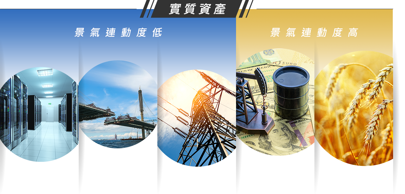 實質資產與景氣連動度低,例如基建及公用事業大多具公營性質,故通常具獨佔或寡佔特性,營運相對穩定;