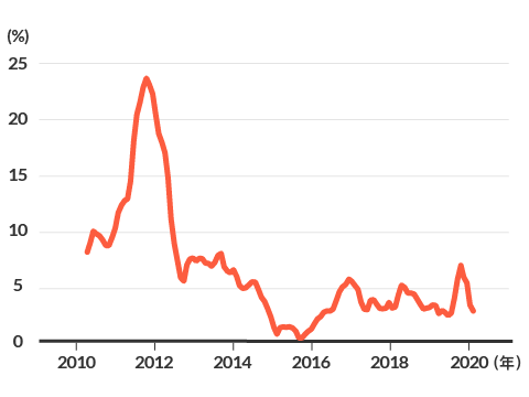 自2017年以來,越南通膨走向穩定,儘管2019年通膨壓力因豬瘟影響食品價格而飆高,但近期已回歸正常。