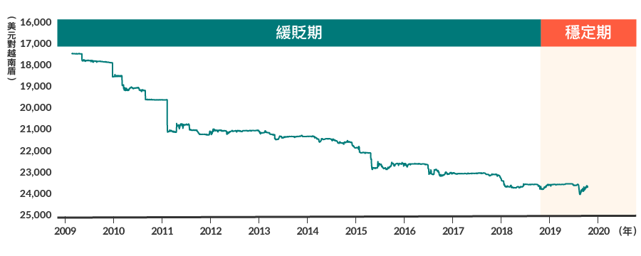 越南盾幣值穩定,即使在今年市場波動較大,越南盾僅微幅貶值0.1%。