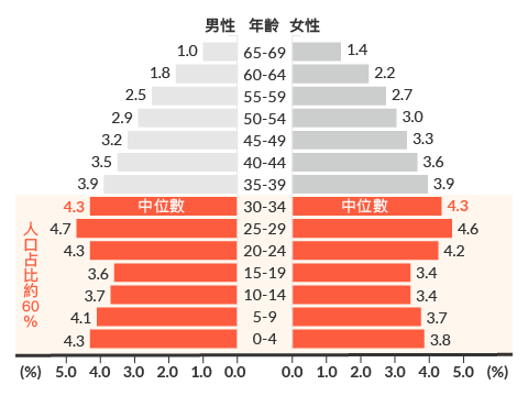 越南外資直接投資(FDI)金額每年維持高成長,大量年輕的人口結構是吸引投資的一大主因。目前越南35歲以下人口佔比約60%。