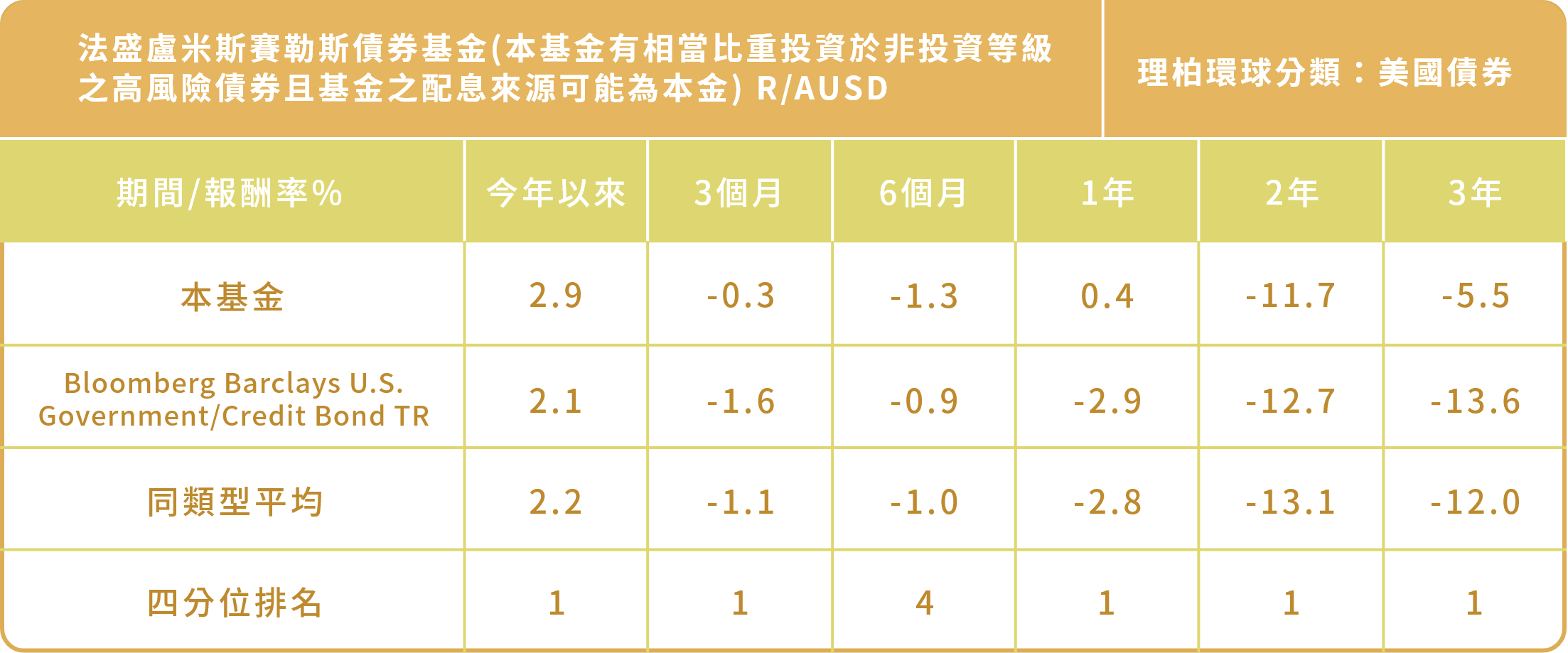 法盛盧米斯賽勒斯債券基金 (本基金有相當比重投資於非投資等級之高風險債券且基金之配息來源可能為本金)